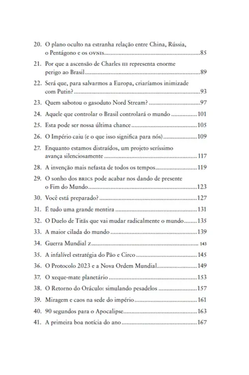 Três anos após o início da pandemia, o mundo vive sob o fantasma de uma Terceira Guerra Mundial, e com rumores de escassez energética, alimentar e de uma ofensiva cibernética global — sem falar numa próxima pandemia. E por que tudo isso, se a humanidade já dispõe de tecnologia suficiente para que ninguém nunca mais precisasse pagar conta de luz, ou fosse privado de comida e conforto? Há, é claro, um pequeno grupo de superpoderosos globais que se fortalece com base na fome, na guerra, no medo e na desgraça dos povos. É de controle que se trata.