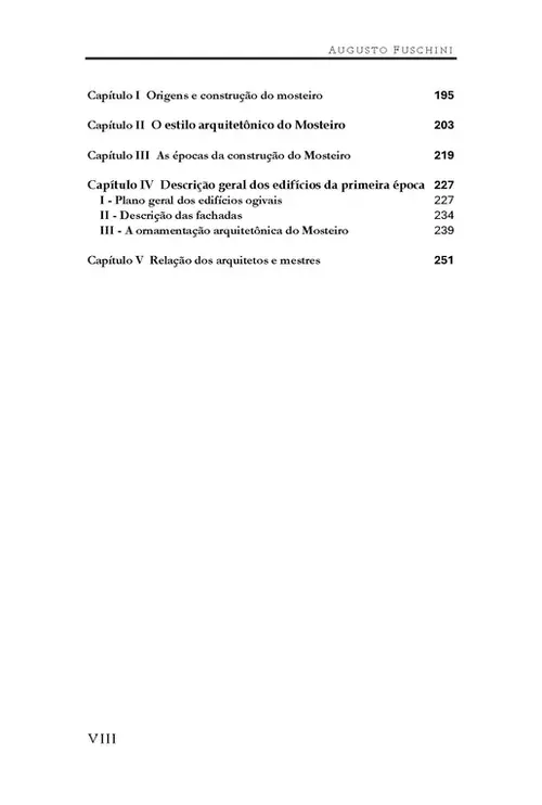 Nesta obra clássica, Augusto Fuschini explora a evolução da arquitetura religiosa durante a Idade Média destacando a influência de diferentes estilos e culturas ao longo de mil anos. O autor começa discutindo as noções fundamentais de espaço e tempo e como essas noções influenciam a arte e a cosmovisão do homem na Antigüidade e na Idade Média. O livro é dividido em quatro partes, cada uma abordando diferentes aspectos da arquitetura religiosa. Em Origens da Arquitetura Cristã, Fuschini descreve a luta entre o paganismo e o cristianismo, destacando como o cristianismo emergiu das catacumbas e começou a influenciar a arquitetura, discutindo a transformação dos templos pagãos em igrejas cristãs e a adaptação das basílicas romanas ao culto cristão.