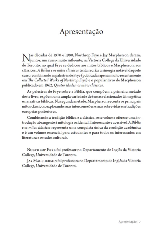 SinopseA Bíblia e os mitos clássicos: a estrutura mitológica da cultura ocidental
