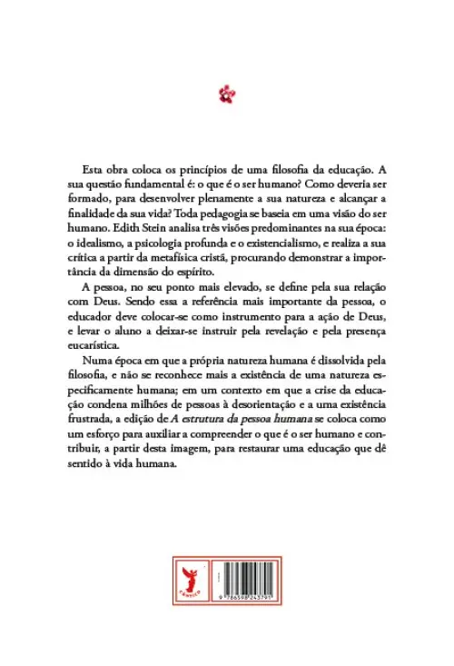 Numa época em que a própria natureza humana é dissolvida pela filosofia, e não se reconhece mais a existência de uma natureza especificamente humana; em um contexto em que a crise da educação condena milhões de pessoas à desorientação e a uma existência frustrada, a edição de A estrutura da pessoa humana se coloca como um esforço para auxiliar a compreender o que é o ser humano e contribuir, a partir desta imagem, a restaurar uma educação que dê sentido à vida humana.