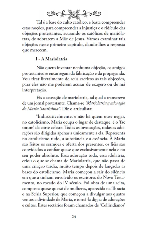 Neste clássico da apologética mariana, o padre Júlio Maria de Lombaerde defende com firmeza e clareza a honra da Virgem Maria contra os ataques e objeções dos protestantes. Com profundo amor à Mãe de Deus e vasto conhecimento teológico e bíblico, o autor responde, ponto por ponto, às críticas dirigidas aos dogmas marianos, como a Imaculada Conceição, a Virgindade perpétua, a Maternidade divina e a Mediação de todas as graças.