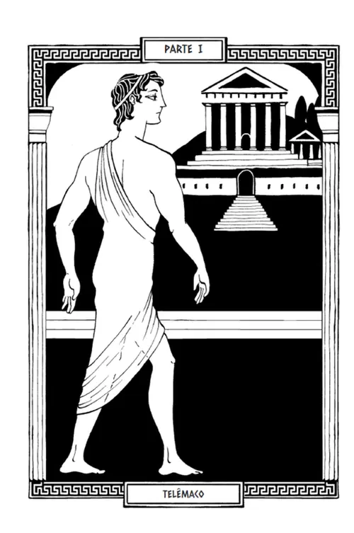 Enquanto isso, em Ítaca, seu filho Telêmaco cresce sob a sombra de um pai ausente. Pressionado pelos pretendentes de sua mãe, que tomaram o palácio e desejam usurpar o trono, ele parte em sua própria jornada, em busca de pistas sobre o paradeiro do pai.