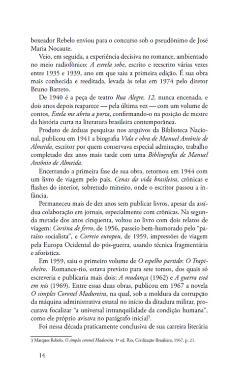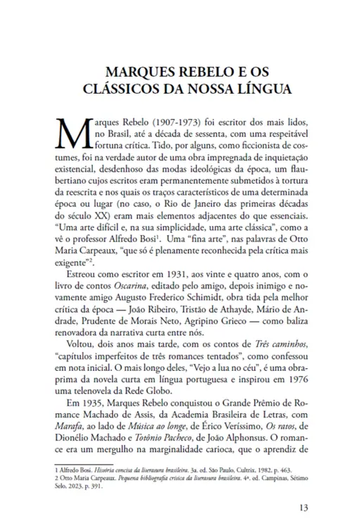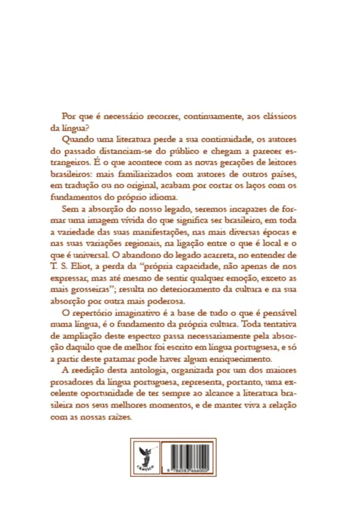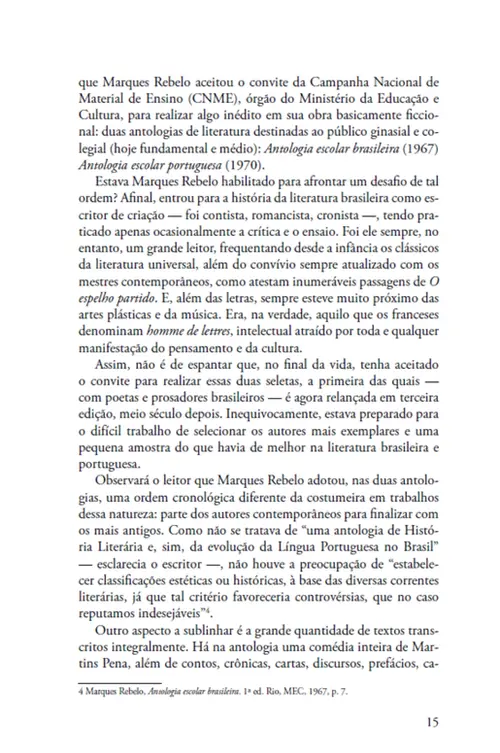 A partir desta antologia o estudante tem a oportunidade de conhecer, pelas mãos seguras de Marques Rebelo, um pouco do melhor que foi produzido na literatura brasileira até meados do século XX, e estará mais apto a formar uma imagem vívida do que significa ser brasileiro, em toda a variedade das suas manifestações, nas mais diversas épocas e nas suas variações regionais, na ligação entre o que é local e o que é universal.