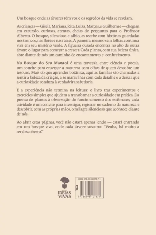 No Bosque do Seu Manacá é uma travessia entre ciência e poesia, um convite para enxergar a natureza como um tesouro. Mais do que aprender botânica, é sentir a beleza da criação, maravilhar-se com cada detalhe e deixar que a curiosidade conduza à verdadeira sabedoria.