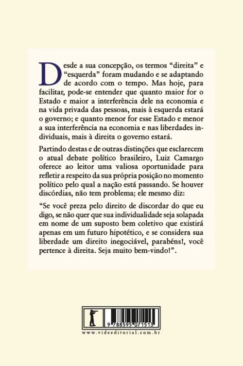 Partindo destas e de outras distinções que esclarecem o atual debate político brasileiro, Luiz Camargo oferece ao leitor uma valiosa oportunidade para refletir a respeito da sua própria posição no momento político pelo qual a nação está passando. Se houver discórdias, não tem problema; ele mesmo diz: