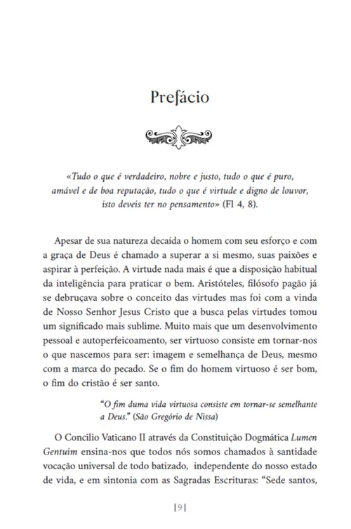 O Concilio Vaticano II através da Constituição Dogmática Lumen Gentuim ensina-nos que todos nós somos chamados à santidade vocação universal de todo batizado, independente do nosso estado de vida, e em sintonia com as Sagradas Escrituras: “Sede santos, porque eu, o Senhor vosso Deus, sou santo” (cf. Lv 19,2); depois, no Evangelho, insiste: “Sede perfeitos como o vosso Pai celeste é perfeito!” Em sua audiência geral, na sala Paulo VI, no Dia 27 de dezembro de 2023 o Papa Francisco deu inicio a um ciclo de catequeses dando abordagem ao tema “vícios e virtudes”, que se encerrou no dia 22 de maio de 2024. Os textos do Santo Padre são de uma riqueza e profundidade inestimável e podem ajudar-nos em nossa busca pelas virtudes, como ele mesmo afirma: “...nenhum de nós está em ordem e se alguém estiver em ordem, está sonhando. Cada um de nós há muitas coisas para consertar e vigiar também. Todos somos pecadores e um pouco de exame de consciência, de introversão nos fará bem”.