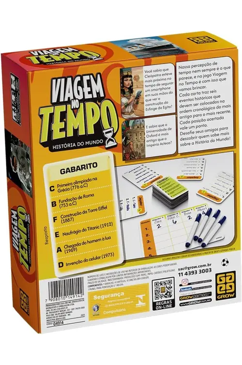 No jogo Viagem no Tempo, cada carta traz seis eventos históricos — e seu desafio é colocá-los na ordem cronológica correta, do mais antigo ao mais recente.