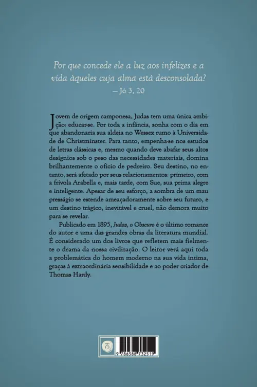 Publicado em 1895, Judas, o Obscuro é o último romance do autor e uma das grandes obras da literatura mundial. É considerado um dos livros que refletem mais fielmente o drama da nossa civilização. O leitor verá aqui toda a problemática do homem moderno na sua vida íntima, graças à extraordinária sensibilidade e ao poder criador de Thomas Hardy.