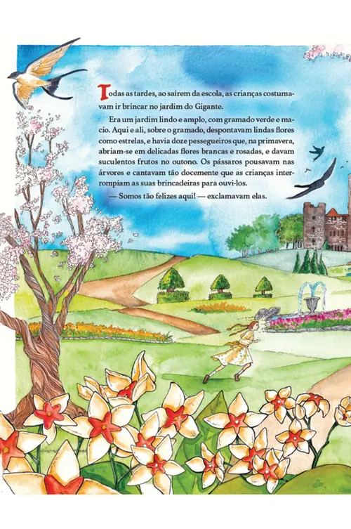 Todas as tardes, ao saírem da escola, as crianças costumavam ir brincar no lindo e amplo jardim do Gigante, que estava viajando. Ao voltar para casa, ele expulsou os pequenos e decidiu construir um muro bem alto em volta do jardim, para que ninguém, além dele mesmo, pudesse brincar ali. Era um gigante muito egoísta. Só lhe faziam visita o Inverno, o Vento Norte e o Granizo, enquanto a Neve e a Geada dançavam entre as árvores. Até que um dia as crianças conseguiram entrar por um pequeno buraco no muro…