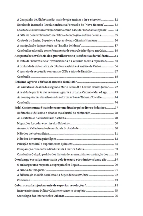 Este livro não apenas conta o que não se ensina nas escolas — ele apresenta uma abundância de fontes e fatos ignorados pelo mainstream acadêmico pró-castrista, seja por desconhecimento ou má-fé. Com linguagem direta, fartura de dados e nenhum receio de desagradar à patrulha ideológica, Lucas expõe os crimes, farsas e consequências do regime castrista, desmontando décadas de romantização revolucionária.