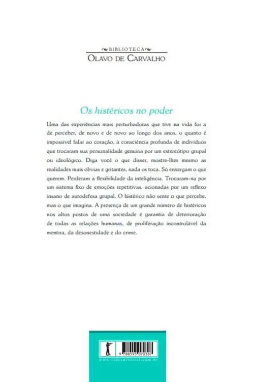 Neste oitavo volume, Os histéricos no poder, apresentamos todos os artigos e editoriais publicados em 2012. Nele, encontramos não apenas o noticiário faltante em nossa imprensa sobre o que acontece nos EUA, mas longas análises da situação política brasileira, da conjuntura internacional e não raras lições de filosofia e ciências humanas.
