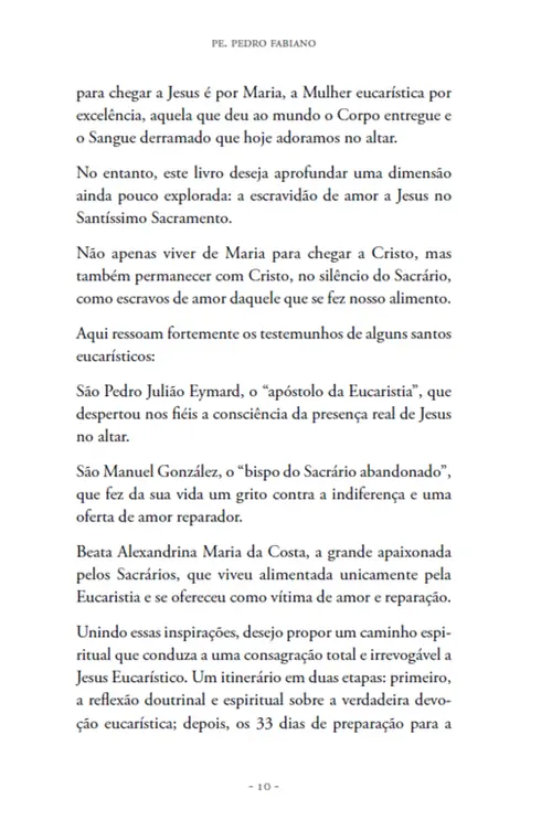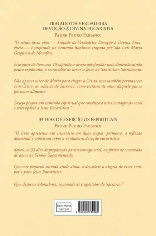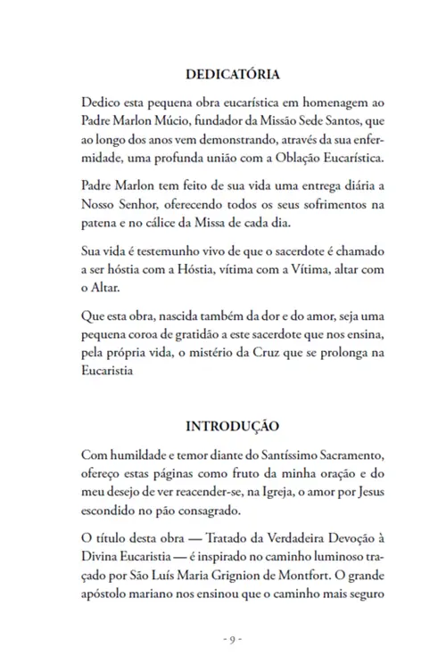 “O título desta obra — Tratado da Verdadeira Devoção à Divina Eucaristia — é inspirado no caminho luminoso traçado por São Luís Maria Grignion de Montfort.