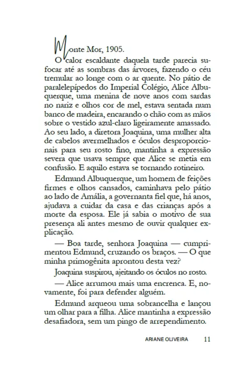 Alice Albuquerque sempre desafiou as regras de um mundo que insistia em limitá-la. Criada para ser uma dama da alta sociedade, ela nunca aceitou injustiças – e muito menos ficar de braços cruzados diante delas. Quando conhece Henrique Lima, um jovem de origem humilde marcado por perdas e desafios, nasce entre eles um laço inesperado e intenso.